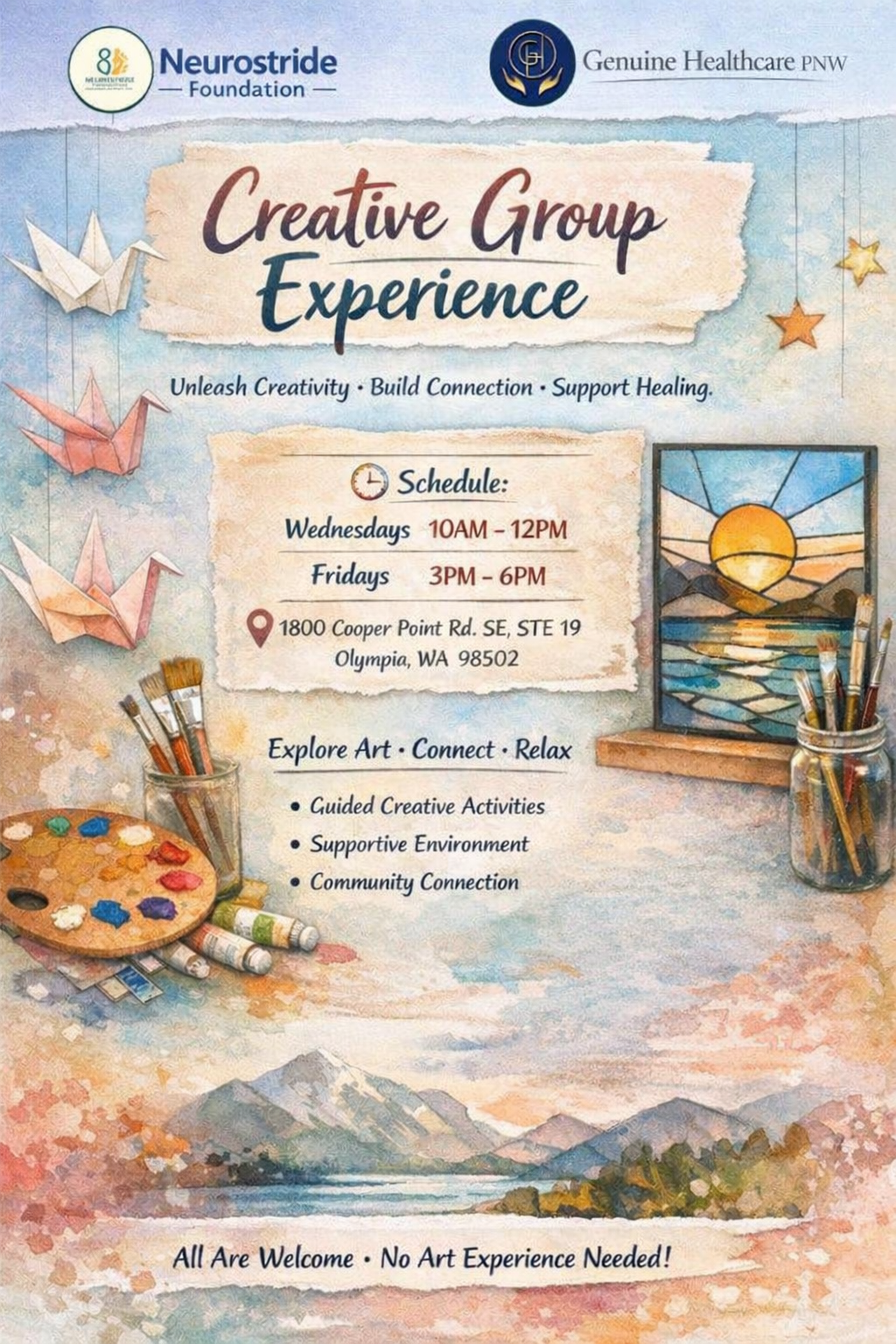 Thank you for your interest in joining our Creative Group Experience. Please complete the form to register. All are welcome, and no art experience is needed.